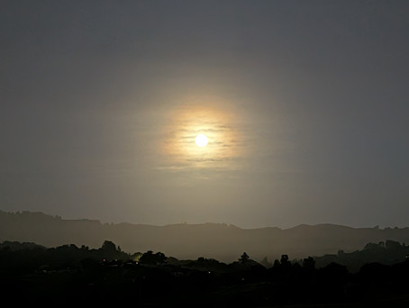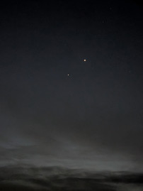 I'll never get tired of this. The sky is different every day, and each moon is unique. It's amazing how much can change in ten minutes. Today the moon and stars were out. Awe in all directions.