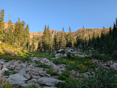 Last day, big hike! I wanted to push myself and get into the real mountains. I picked a route AllTrails rates as "Hard" and it was no joke. The 6.8-mile hike to Lower and Upper Crater Lakes took 4 hours and 15 minutes, with very little downtime. The last stretch - about 0.7 miles each way - was a near-vertical scramble up and down a harrowing and confusing trail. I wondered why I hadn't carried the Garmin or told Leah where I was going - recalling the cautionary podcast about Aron Ralston we'd listened to on the drive to Colorado. Eek.